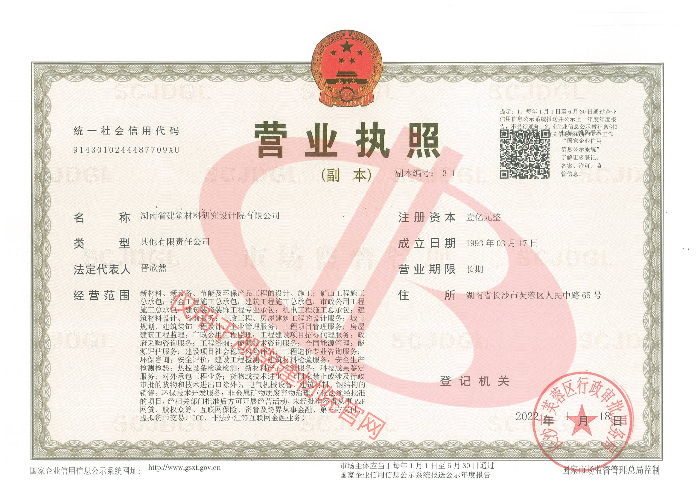 湖南省建筑材料研究設計院有限公司的前身為湖南省建筑材料研究設計院,成立于1958年,是1993年全國首批榮獲國家建材行業設計、工程總承包甲級資質的四個科研設計單位之一。